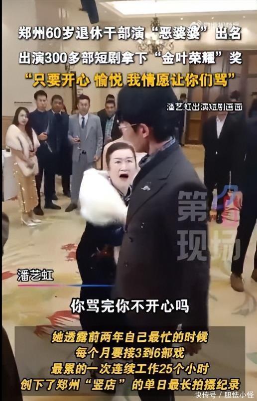 退休政工干部潘艺虹,赶上短剧行业申明鹊起,因精确拿抓“恶婆婆”变装,获赠雅号“竖店容嬷嬷”,并于2025年拿下“金叶荣耀”奖。她浮现,前两年最忙时,每个月要接8到10部戏,最累的一次连结使命25个小时。